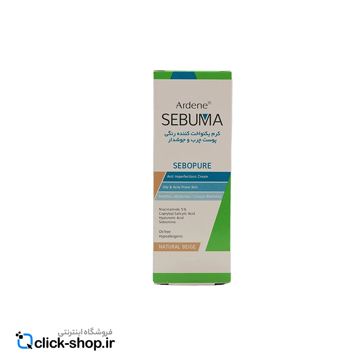 خرید آنلاین از فروشگاه اینترنتی کلیک شاپ ، کرم مرطوب کننده و یکنواخت کننده رنگ بژ طبیعی آردن سبوما 30 میلی لیتر، محصولی ترکیبی‌ است که هم جنبه آرایشی و هم مراقبتی دارد. این کرم با پوششی ملایم، رنگ پوست را به شکلی یکنواخت‌تر جلوه می‌دهد و در عین حال تلاش می‌کند تا از بروز جوش جدید جلوگیری نماید. پس از استفاده، پوست ظاهری طبیعی و متعادل به دست می‌آورد، بدون اینکه احساس سنگینی یا چربی زیاد ایجاد شود. یکی از ویژگی‌های مهم این ترکیب، کمک به کنترل براقی و برق ناخواسته پوست در طول روز است. به‌علاوه، این محصول می‌تواند قرمزی ملایم یا ناهمواری‌های رنگ را کاهش دهد و حالتی یکدست‌تر در چهره ایجاد کند. با وجود تأکید بر جنبه رنگی، این ترکیب رطوبت سطحی را نیز حفظ می‌کند تا از خشکی یا کشیدگی پوست جلوگیری شود و از آنجا که این محلول برای پوست‌های مستعد به جوش طراحی شده است، فشار زیادی بر منافذ ایجاد نمی‌کند و با فرمولی که سنگینی زیادی ندارد، حتی در طول روز هم قابل‌ استفاده است. بافت سبک این کرم به‌سرعت جذب می‌شود و حالت براق روی پوست باقی نمی‌گذارد و همچنین به دلیل غیرکومدون‌زا بودن، احتمال بسته شدن منافذ و تشدید جوش‌ها در آن بسیار پایین است.