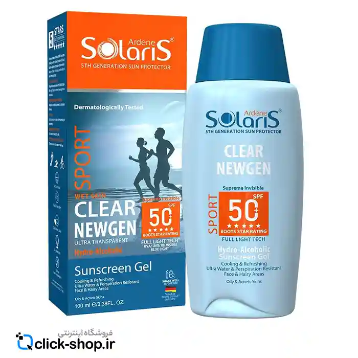 ژل ضدآفتاب بی رنگ اسپرت کلیر نیوژن آردن سولاریس SPF50، یک ضد آفتاب محافظتی پیشرفته برای افرادی است که در شرایط پرتعرق، پرتحرک یا مرطوب قرار دارند. این ژل ضد آفتاب بهگونهای تولید شده که بتواند در برابر اشعههای مضر خورشید از پوست محافظت کرده و در عین حال، سبک، بدون رنگ و مناسب برای استفاده روی انواع پوست، بهویژه پوستهای چرب و حساس باشد. SPF 50 موجود در این ژل، نشاندهنده قدرت محافظت بالای آن در برابر اشعههای UVB است که عامل اصلی آفتابسوختگی محسوب میشوند. همچنین، محافظت در برابر اشعههای UVA که عامل پیری زودرس، ایجاد لکهای پوستی و اختلالات سلولی هستند، از دیگر ویژگیهای این محصول است.
