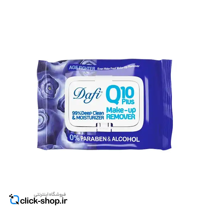 دستمال مرطوب پاک کننده آرایش دافی مدل Q10 طرح بلوبری 50 عددی، محصولی کاربردی و مراقبتی از برند معتبر دافی است که با ترکیبی مؤثر از پاک‌کنندگی، آبرسانی و جوان‌سازی پوست طراحی شده تا تجربه‌ای کامل از پاکسازی روزانه را برای شما فراهم کند. یکی از مهم‌ترین ویژگی‌های این فرآورده، وجود کوآنزیم Q10 در ترکیب آن است که یک آنتی‌اکسیدان قدرتمند است و نقش بسیار مهمی در ترمیم سلول‌های پوستی و جلوگیری از پیری زودرس دارد. این ترکیب باعث افزایش تولید انرژی در سلول‌های پوست شده و به بازسازی و تقویت بافت پوست کمک می‌کند. در کنار Q10، عصاره بلوبری نیز در فرمول این محصول موجب شادابی، روشن شدن پوست و مقابله با آسیب‌های ناشی از آلودگی هوا و نور خورشید می‌شود.