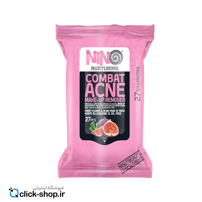 دستمال آرایش پاک کن ضد آکنه نینو 27 عدد